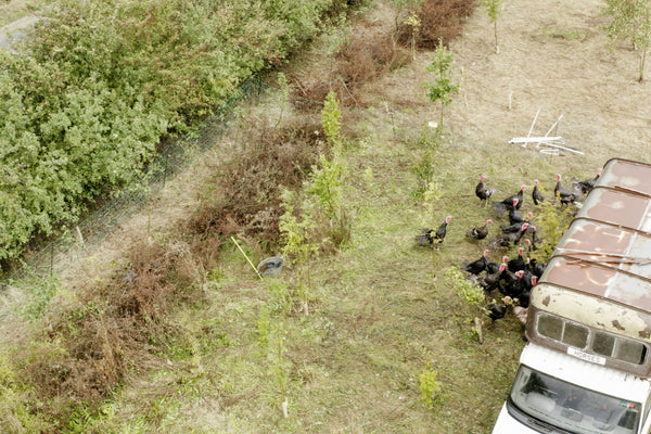 Regenerative farmer Neil Harley is growing turkeys exclusively for us following his cattle in a rotational system.