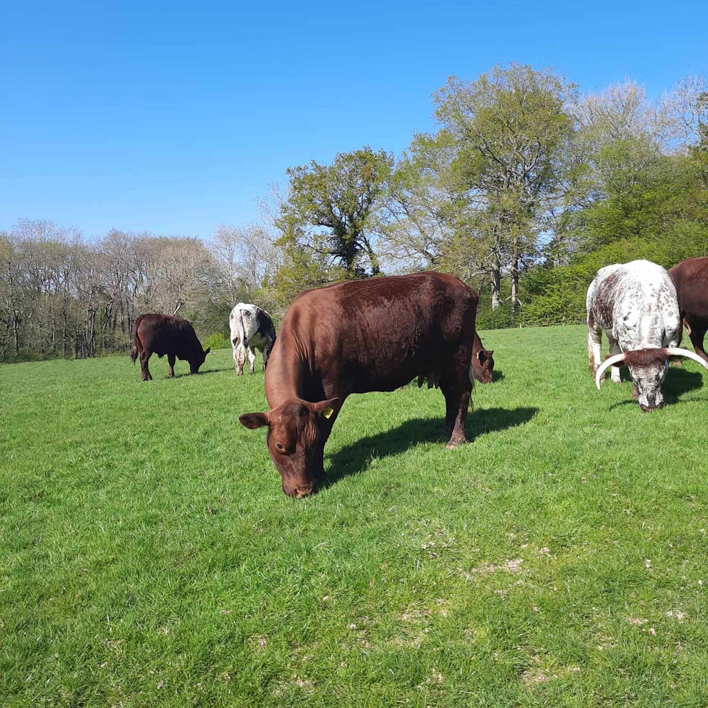Organic for over 20 years PFLA Longhorn cattle and manx loaghtan sheep in Devon
